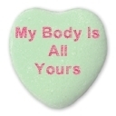I admit it, boxes of candy conversation hearts were a big part of my childhood. Granted, I won't eat them anymore because they're way too sweet, but I used to love them. This morning I stumbled upon a little website that allows you to create your own conversation hearts, so of course I had to play. I started thinking what would some of my characters give each other, and these are the results.