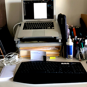 Over the last few weeks my laptop has taken on an increasingly stationary role. I’ve pulled it away from the current set-up exactly twice–once for Write Club and an afternoon at the university, and once when it was necessary to write away from the desk due to other things going on in the flat. the rest of the time it’s sat in the same spot, with the same peripherals plugged in or attached to the bluetooth. Surrounded by the same tools, the same books, the same project notes.