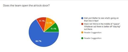 Part two of my sci-fi serial where readers get to choose what happens next. When we encountered the three-person team manning Remote Research Station Denki back in part 1, they were surprised by a mysterious knock on the door…and no details appearing on any scans. Readers go to vote on how they responded, and I’ve included the results below!