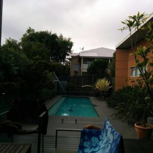 I haven’t been in the pool for about six weeks because it’s cold. Yes, I know it’s only a Brisbane winter, there’s no ice and snow, but I am accustomed to a certain degree of warmth in my watery elements, and that is not currently present in the pool. Getting to a heated pool is time-consuming and annoyance-causing. But because I’ve not been in the pool, not doing my exercises, the knees and back and hips have been aching. So, I’ve been looking longingly at the body of water in the back yard, trying to psych myself up – a process that sometimes involves thoughts about buying wetsuits, which generally then downgrade to “I wonder if I could wear a tracksuit in there?”