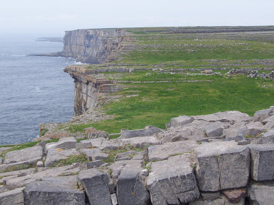 an ancient stone fort atop a massive cliff on the Aran Island of Inishmore.