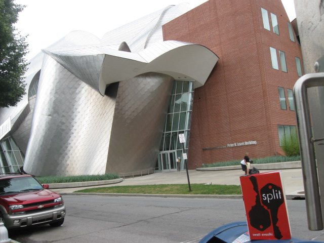 Here he is, lounging on a mailbox, thinking about the Gehry building and pondering life in an institution of higher learning.