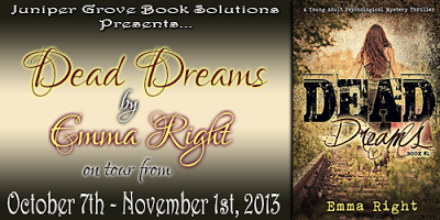 Today I'm delighted to welcome author Emma Right to my blog. Her new book Dead Dreams, a YA psychological mystery recommended for age 11 and up, was released last month, and I'm honored to be one of her tour hosts. There's a tour wide giveaway going on too, so don't forget to follow the Rafflecopter links at the end of this post.