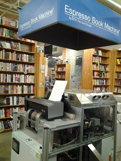 Powell's are going to put Divide by Zero on the shelves in my local store, but in the downtown store there's another curious option. It's in the Purple Room, it's called an Espresso Machine, and it serves up printed books to read while drinking those cups of coffee.