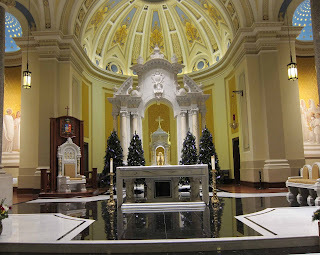 Newman as a Catholic Priest --Notes Newman's comfort in the Eucharistic Presence of Christ in the Tabernacle; mentions Newman's aims in building Our Lady Seat of Wisdom for the Catholic University of Ireland in Dublin, its Byzantine/Romanesque style.