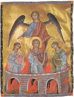 Image Source (Public Domain); Fiery furnace by Toros Roslin, Mashtots, 1266 (MS No. 2027, Fol. 14 V.) (Armenian art)