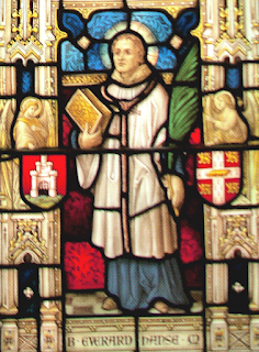 Blessed Everard Hanse was born in an Anglican family in Northamptonshire, attended Cambridge University, and was ordained as a Church of England minister with a good living. His brother William had become a Catholic priest in Rheims and returned to England in 1579, hoping to bring Everard to the Catholic Church. As Father Bowden remarks, his brother's arguments weren't as persuasive as an illness Everard suffered: it "placed all things in a new light, and William had the consolation of receiving his brother into the Church." (p. 247)