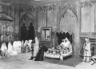 Both of these Edward VI schools--at Sherborne and at Bury St. Edmund's--were founded on the sites of former monasteries. Bury St. Edmund's Abbey was the site of St. Edmund the Martyr's shrine and a great site of pilgrimage from the Twelfth Century until its dissolution in 1539, as the British History Online website explains: