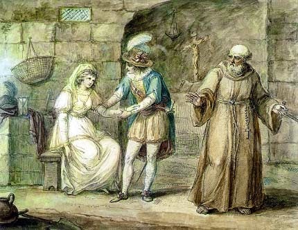 Shakespeare may have had not just traditional Catholic leanings, but also personal memories behind his portrayal of Friar Laurence. Heinrich Mutschmann and Karl Wentersdorf suggest that Fr. Frist, the Roman Catholic priest of Temple Grafton (the likely venue of Shakespeare’s marriage to Anne Hathaway), was the biographical model for Friar Laurence. Frist was also interested in medicine and healing, and the famously rushed marriage that he would have performed for the Warwickshire couple was by license rather than by the usual banns. A second personal Catholic association may also loom in Shakespeare’s memory in forming the Church regular. In Shakespeare’s home county of Warwickshire, a religious community, called the Guild of St. Anne, flourished prior to the Reformation. Its registry contains 16 brothers and sisters named Shakespeare, one of which was an abbess, Isabella, who bears the name of the Poor Clare heroine of Measure for Measure. Isabella Shakespeare may have been an aunt of William, the poet.