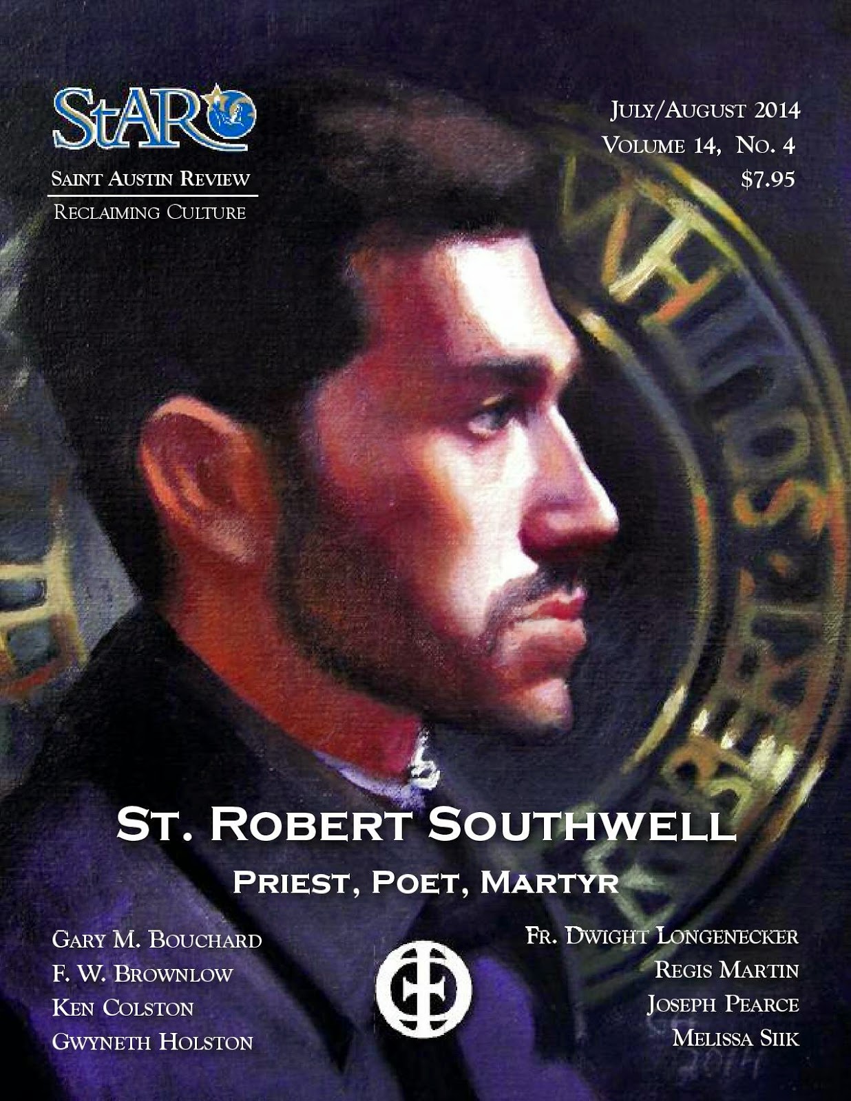 Bouchard writes about why Southwell has not received his due in the history of English literature, with only "The Burning Babe" being included in anthologies. He cites the work of Allison Shell, Scott Pilarz, SJ, Anne R. Sweeney, and John Klause to demonstrate that Southwell is beginning to receive his due, both for the quality of his work and for the influence he had on numerous poets. Bouchard opines that "Southwell's life and writings instructed Alabaster, provoked Spenser, prompted Herbert, haunted Donne, inspired Crashaw and consoled Hopkins" (p. 16). That's William Alabaster, Edmund Spenser, George Herbert, John Donne, Richard Crashaw, and Gerard Manley Hopkins. StAR devoted the September/October 2013 issue to Richard Crashaw, who was a Catholic convert and poet in exile during the reign of Charles I.