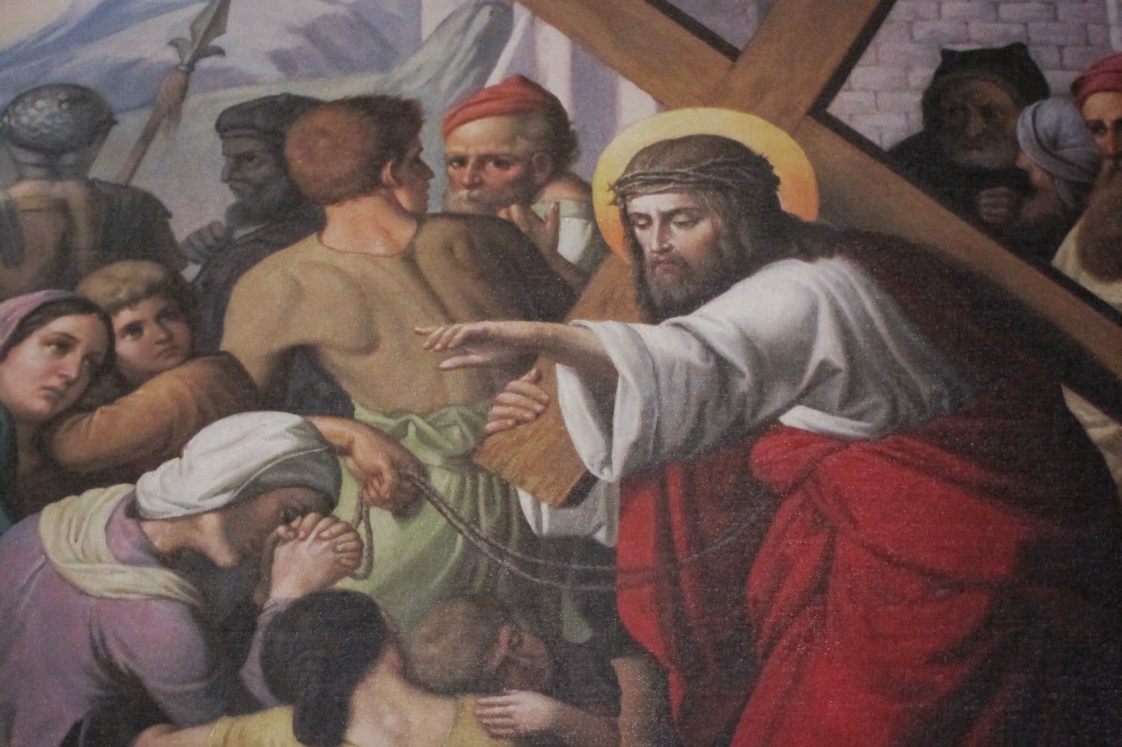 You'll remember that I posted about visiting the Church of the Blessed Sacrament one Friday afternoon after some new/old Stations of the Cross from our renovated Cathedral of the Immaculate Conception were installed.The pastor updated the status of the stations on his blog, giving some history, here.