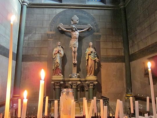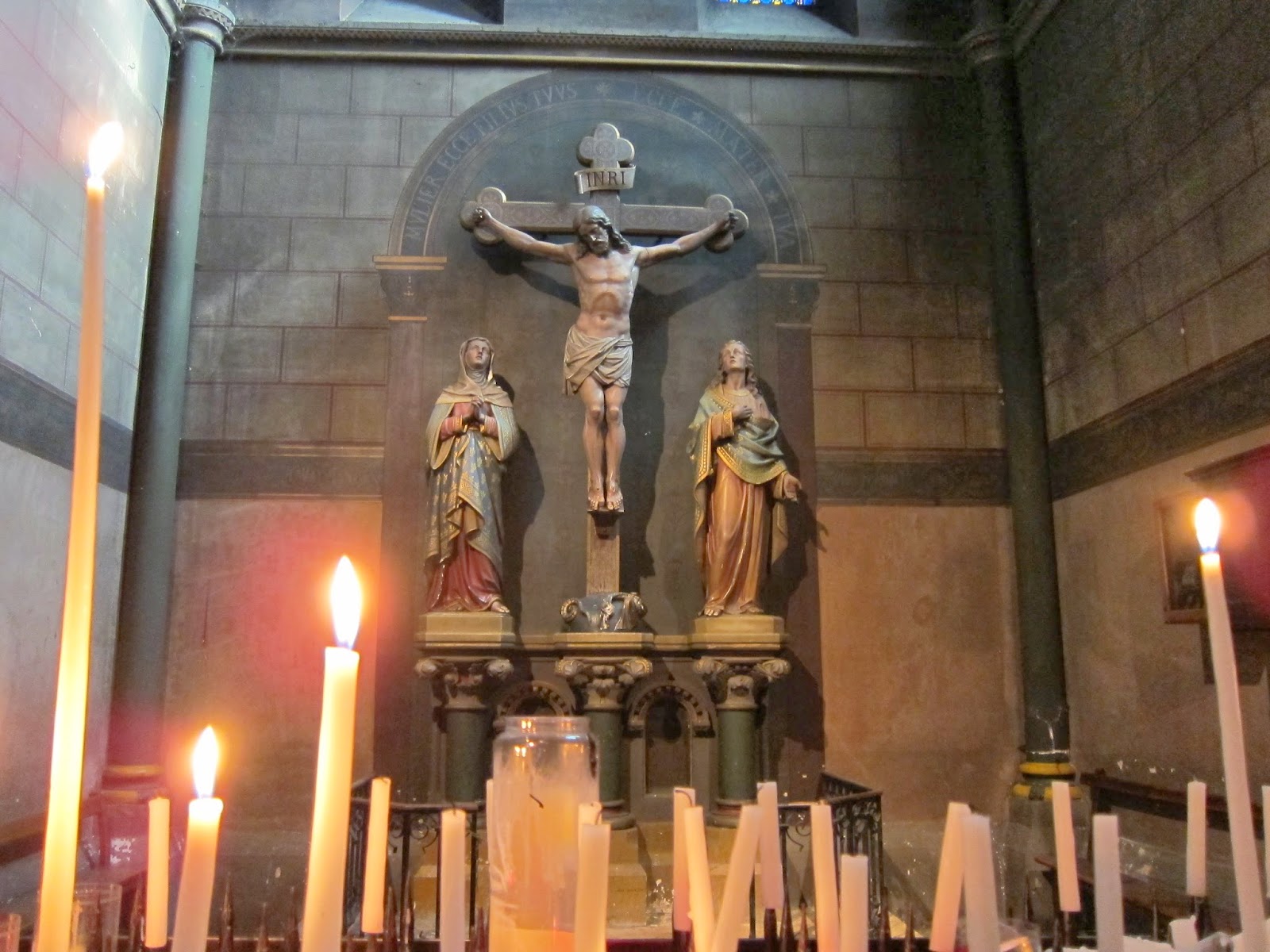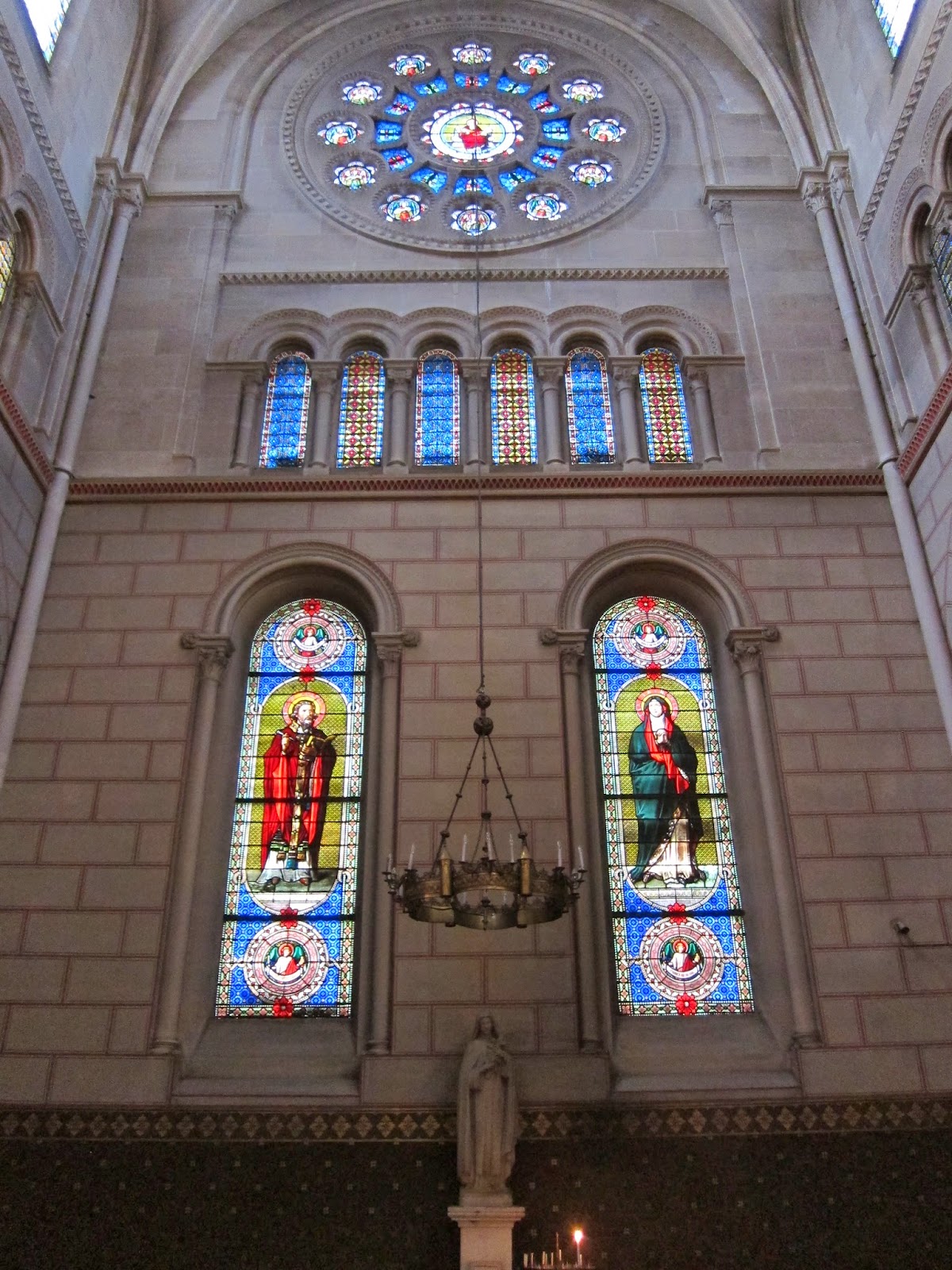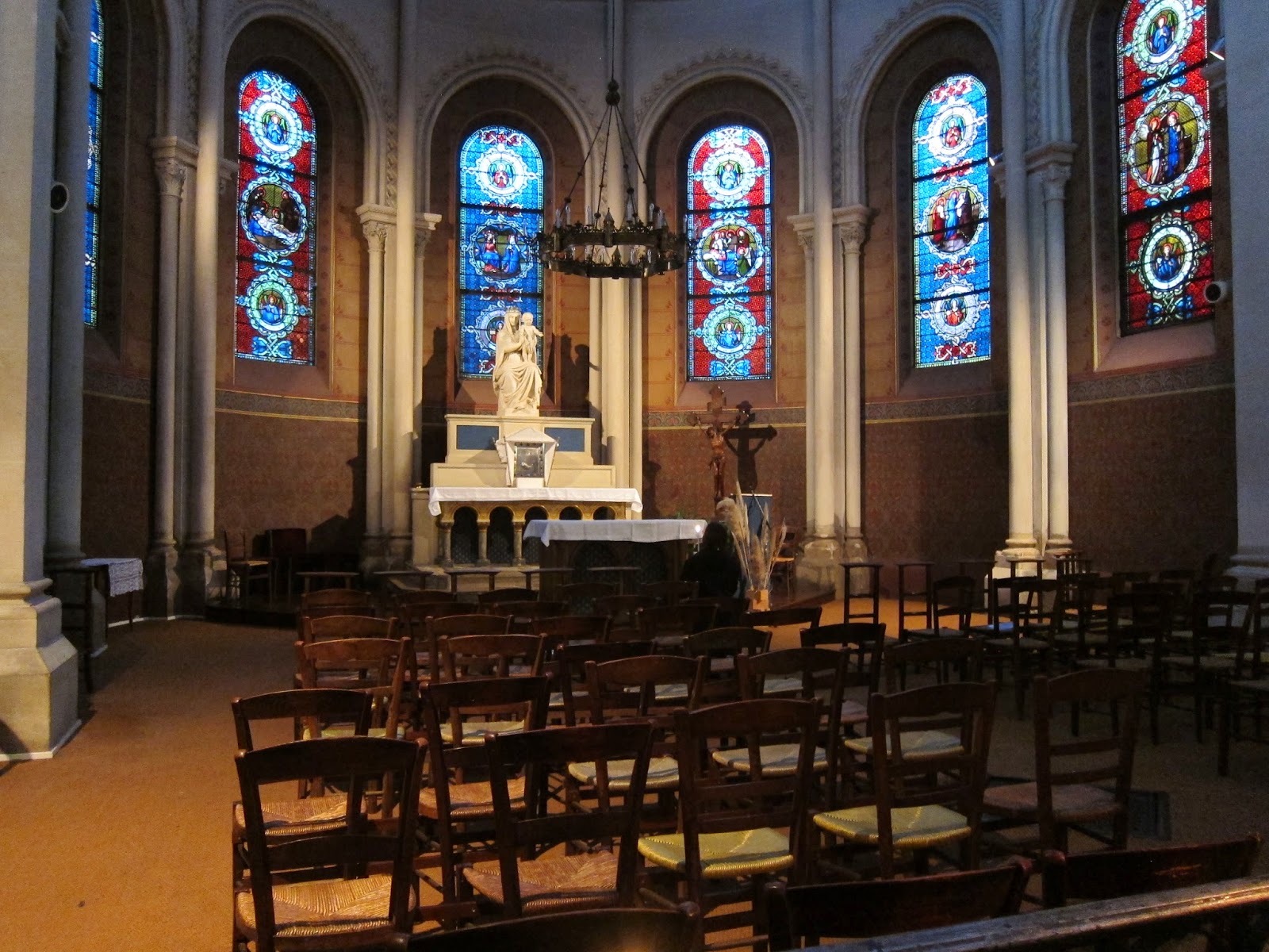 St. Ambroise was built between 1863 and 1868 and was consecrated on December 7, 1910. I'm not sure why there was such a gap between construction and consecration--the Franco-Prussian War, the Paris Commune and its aftermath?--but it was consecrated on the patron saint's feast day (St. Ambrose of Milan)! The architect, Theodore Ballu, also designed St. Trinite and led the reconstruction efforts on Tour St. Jacques. Inside, we found beautiful stained glass and one most wonderful side chapel: