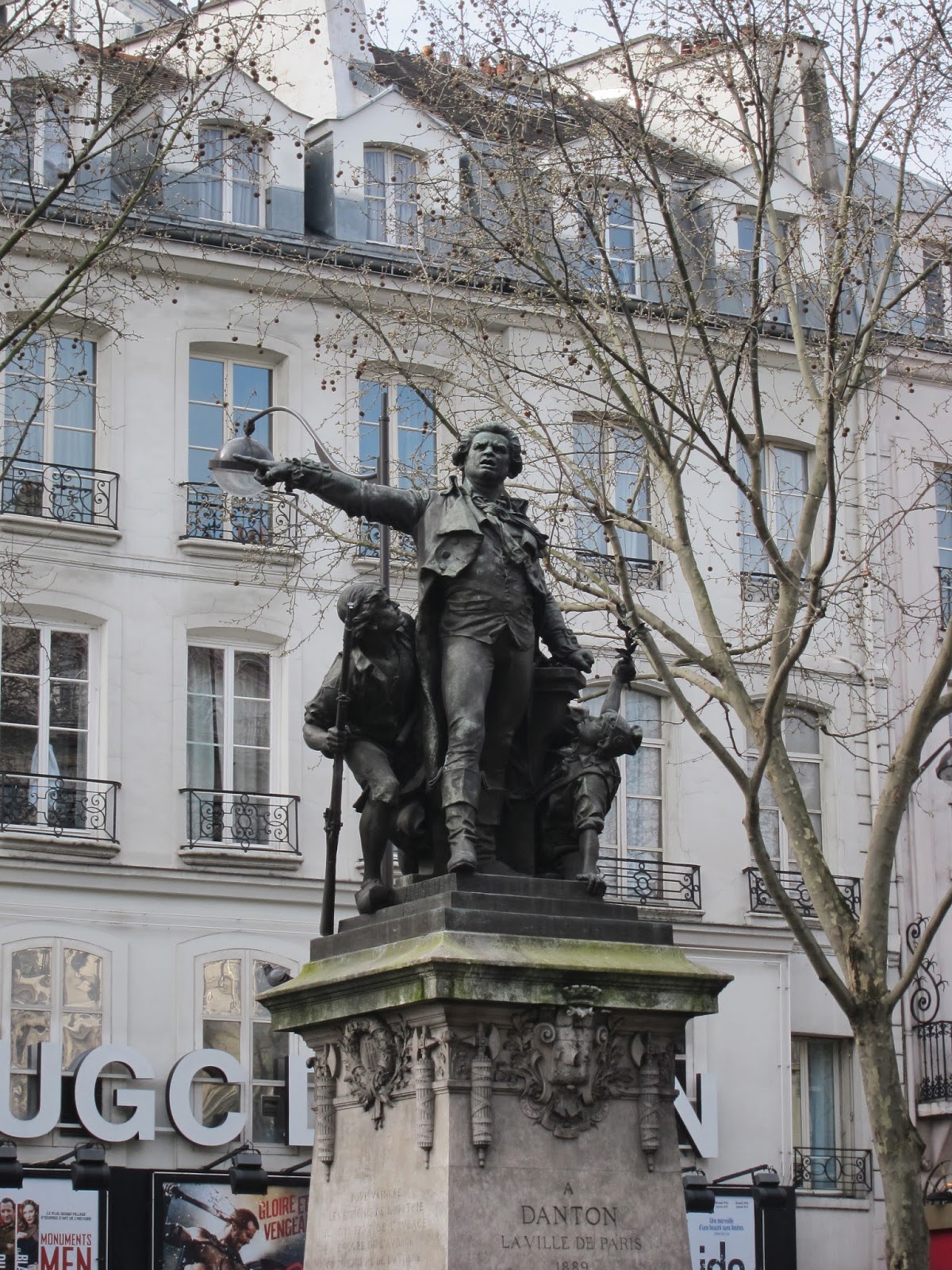 We took a little jaunt off St. Michel to the Place St. Andre des Arts and then headed down Rue Danton to Blvd. St. Germain, pausing to notice the statue of Danton proclaiming "Il nous faut de l'audace, encore de l'audace, toujours de l'audace!