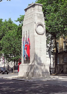 This aligned with the widespread democratic appeal of the Cenotaph, which neither proclaims victory nor sentimentalizes the fallen, but instead brilliantly evokes the loss of millions. This explanation makes me think of one advantage of having a national Church: the inclusion of a beautiful Christian hymn, Isaac Watts "O God Our Help in Ages Past", based on Psalm 90, as part of a national ceremony. England may have grown more secular since that "war to end all wars" but the hymn is still part of the ceremony. Image source: wikipedia commons.