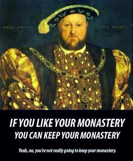 This image has been making the rounds on various facebook pages and blogs, comparing President Obama's promises about insurance while campaigning for the Affordable Care Act (aka Obamacare) to Henry VIII and the Dissolution of the Monasteries. (You might recall that comparisons between Henry VIII and President Obama have come up before in the context of the HHS Mandates on contraceptive, abortafacient, and sterilization coverage.) I don't think that Henry VIII--whose only campaigns were military--ever made such a promise, but certainly on this day, November 15, in 1539, the Abbots of Glastonbury and Reading Abbeys found out that they could not keep their monasteries open. Blessed Richard Whiting, Blessed John Thorne, and Blessed Roger James were executed on Glastonbury Tor near their empty and soon to be desolated abbey, and Blessed Hugh (Cook) Faringdon, Blessed John Rugg and Blessed John Eynon were executed at Reading Abbey.