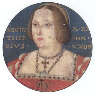 Garrett Mattingly notes in his biography of Catherine of Aragon, "It is hard to imagine Henry and Catherine at their coronation. Their images are pale as ghosts beside their later selves . . ." In 1509, Henry was young, tall, an athlete with a ruddy round-cheeked face, while Catherine was fresh, delicate, sweet and winsome. As Mattingly notes, "The Londoners thought her bonny . . . Henry thought her bonnier than any."