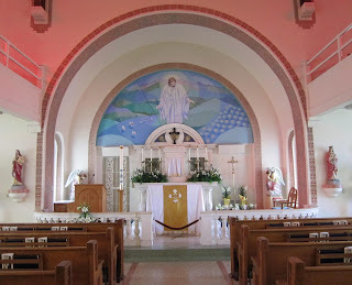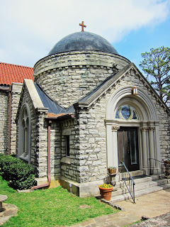 Here's some more detail about the church, addressing its architectural uniqueness. Catholics are a minority in Arkansas (only 6% of the population) so a beautiful church like this, with such care and devotion on display throughout its small footprint--the grounds contain additional statuary and a lovely view of the residential area surrounding the church--is really a blessing.