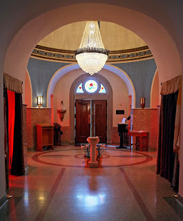 And here is a view of the nave and sanctuary--there is a balcony (you can see the rails to the left and right) with additional seating so that the church has room for 200 worshippers.