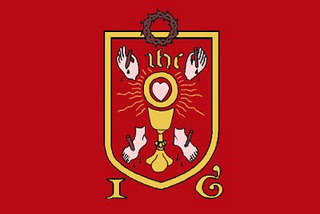 As you might recall, devotion to the Five Wounds of Jesus was very popular in England before the Reformation and became a symbol of opposition to the Henrician and Elizabethan religious changes. Both the Pilgrimage of Grace and the North Rebellion used the banner of the Five Wounds.