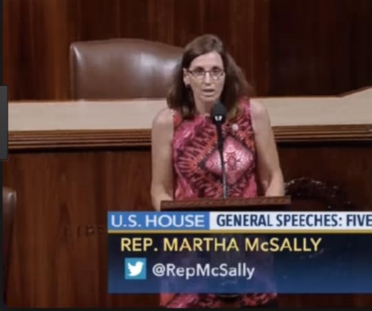 Yesterday Republican Congressperson Martha McSally, a former fighter pilot and the first woman in American history to fly into combat, ended her speech in the well of Congress by saying, “Before I yield back, I want to point out, I’m standing here in my professional attire, which happens to be a sleeveless dress and open-toed shoes. With that, Mr. Speaker, I yield back.”
