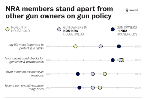 It's also important to remember that NRA members often disagree with the NRA on key issues. For example, a vast majority of NRA members (over 75%) support comprehensive background checks before purchasing a gun, but the NRA stands opposed to this.