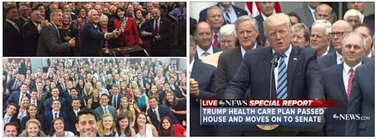 Last week it was Donald Trump announcing the passing of House's healthcare bill in the Rose Garden with a seas of white, almost exclusively male Congressmen standing behind him.