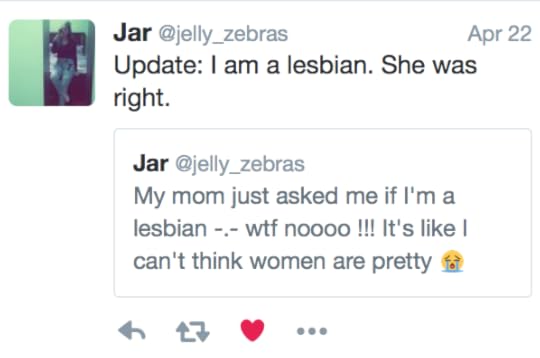 Of the tens of thousands (and maybe more) tweets I've ever read, this is my favorite. It was sent from a woman who identifies herself as Jar and uses the Twitter handle @jell_zebra.