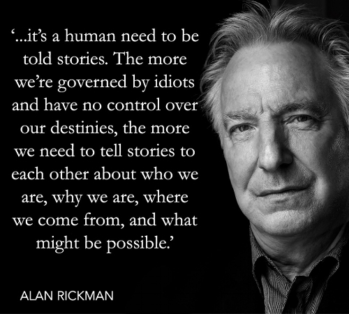 Rickman was right. We need to tell stories about who we are, why we are, where we come from, and what might be possible.