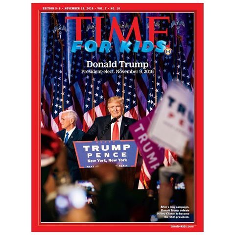 Still, when confronted with a weekly reader at her school featuring a piece on Trump's inauguration, she said, "Most of the kids in my class scratched his face off the cover of the magazine because they all hate him, too. But I didn't. I wanted to be respectful even though I really don't like him."