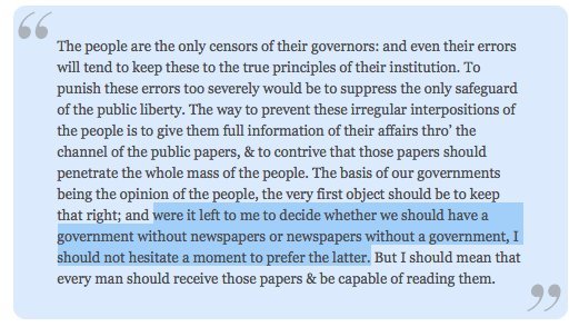 "A critical, independent and investigative press is the lifeblood of any democracy."