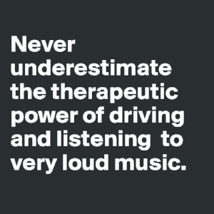 When I am alone, I often drive with the windows down, the heat or AC blasting depending upon the season, and the music at full volume. Loud enough to make people stare.