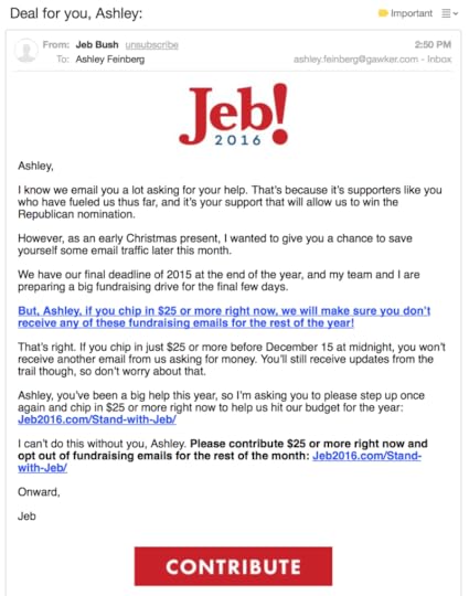 Ashley Feinberg at Gawker received received an unusual email from the Bush campaign last week.