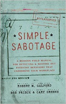 In their new book, Simple Sabotage: A Modern Field Manual for Detecting and Rooting Out Everyday Behaviors That Undermine Your Workplace, Robert M. Galford and Cary Greene, examine the "Simple Sabotage Field Manual,” a guide published by the OSS (the predecessor of the CIA) in 1944 to assist European spies undermine the Axis powers from within.