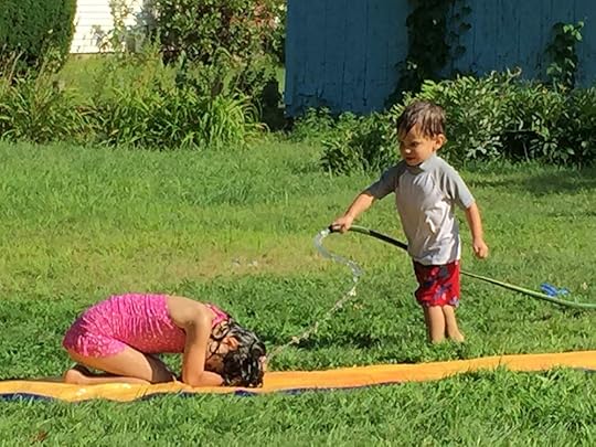 My kids were playing in the backyard with the hose.
