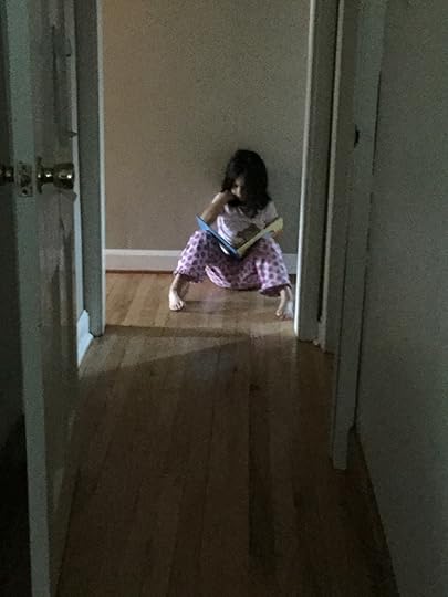 I'm in Brazil, which means that when Clara woke up, she couldn't go downstairs and see her Daddy, who is either writing, sweeping, or getting breakfast ready for her every morning. Not wanting to wake anyone up but with no one to talk to, she plopped herself down in the hallway to wait.