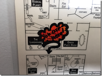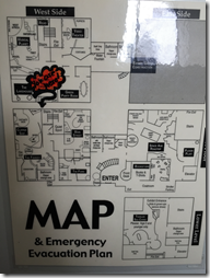 Just a thought, but perhaps your Emergency and Evacuation Plan map shouldn’t indicate your present position in an amorphous speech bubble that seems to engender a sense of flame, heat, and panic, and shouts the three words with the use of an exclamation point.