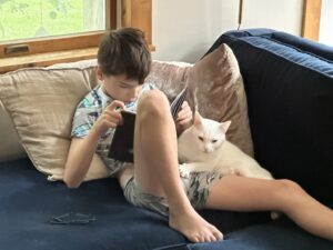 Charlie came downstairs early on Saturday morning, picked up a book, sat down on the couch with the cat, and spent nearly an hour reading.