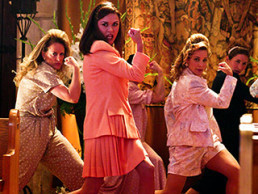 So Bourbons is broke and shutting down, with no help from the mayor’s wife (played by Catherine Zeta Jones) who clearly has a vendetta against rock-and-roll. She’s looking all MILF in her snazzy pencil skirts, gathering church ladies to sing and dance about how rock-and-roll is raping our children’s ears and turning them into delinquents who don’t wash their hair or kiss their mothers anymore. The horror! And let me tell you – their dance ain’t so G-rated. Meanwhile her hubby, the mayor and clearly just the face of the partnership because it’s obvious who wears the pantsuits in this relationship, is literally getting spanked in the church office.