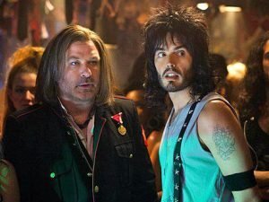 Rocker wannabe Drew (played by someone I don’t know) spots Sherry getting mugged and gets her a job working at Bourbons – a grungy bar and popular rock-and-roll spot. The quirky cast of characters is introduced via song – this is a musical if you don’t know that already. But the good thing about it being all 80’s rock is that you don’t really have to be a good singer. As evidenced by Alec Baldwin, the club’s owner Dennis. He’s assisted in running the business and vocally carried by Lonny (played by Russell Brand).