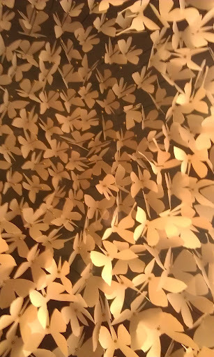 It's quite beautiful. I know some people might not be able to get over the idea of such violence done to books, but I find the transformations breathtaking. Like the butterflies above the pieces show how our ideas take wing as we read.