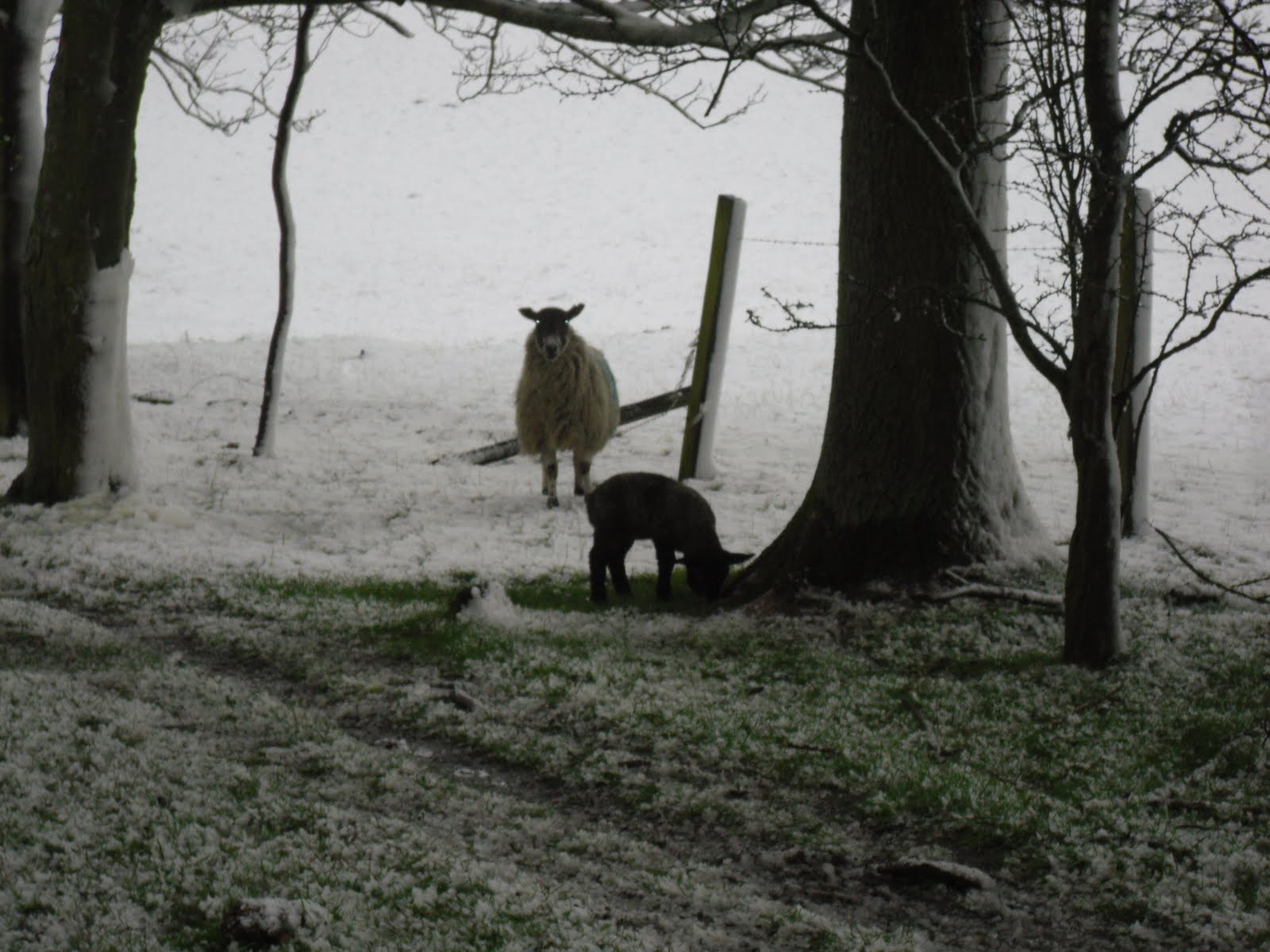 A week ago temperatures were high enough in the UK to sunbathe. Today this is what we woke to! The lambs across the road look very cold!
