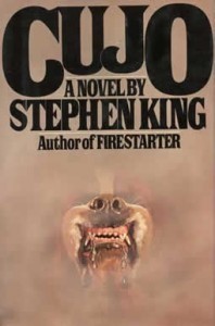One of the fellow doinks in my dorm had lent me a stack of horror paperbacks, and the one on top was Cujo. I don't know why I even opened it, based on the back jacket copy: A big friendly dog chases a rabbit into a hidden underground cave—and stirs a sleeping evil crueler than death itself. A terrified four-year-old boy sees his bedroom closet door swing open untouched by human hands, and screams at the unholy red eyes gleaming in the darkness ….
