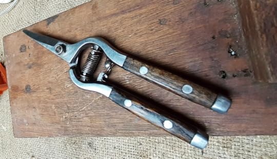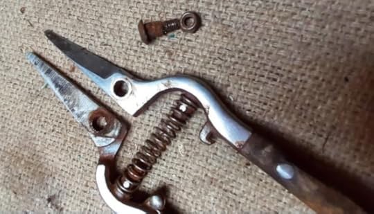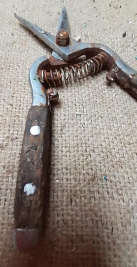 The missus came in yesterday looking disturbed. In her hand, one of her prized "lady tools", the Kent and Stowe pruning snips, jaws rusted and frozen wide, wooden hand grips covered in debris.