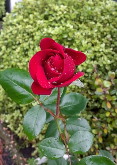 She immediately trimmed a stem of the Dublin Bay rose in a vase on the windowsill.