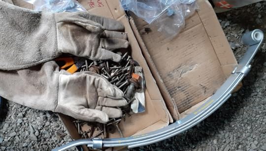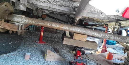 I bolted the new leaf springs to the axle and jacked it up into place. A few adjustments, then everything lined up and fitted. Praise Jah.