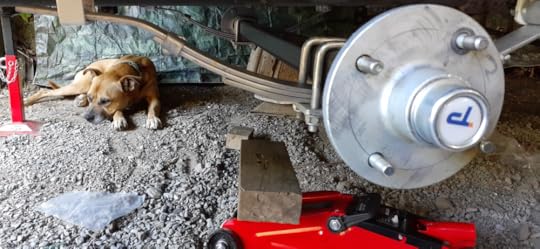 I put the refurbished wheels on, dropped the trailer off the stands and pushed it out of the carport. So much lower than before. Great, less wind-resistance.