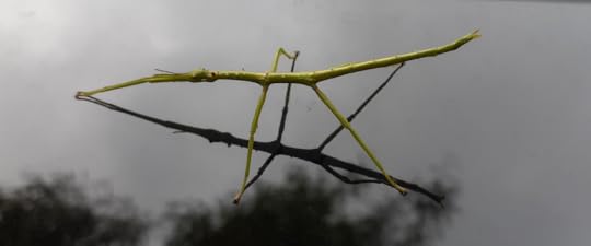 "Where's Sticky?" The missus asked. Well, here's Sticky's little niece or distant cousin. Colour does seem to indicate familial relationship among stick insects. Big Sticky, recently sighted on the back wall with 3 others, was all faded greys and browns matching the timber surrounds.