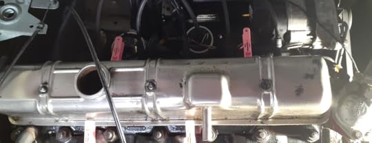 So, during the biblical rains earlier this week, and needing a break from writing and the computer screen, I tackled the leaking rocker cover gasket for the 3rd (and hopefully final) time. The original was crispy like a cracker and beyond reuse. Previously, due to major Covid-related delays for car parts bought online, I had attempted sealing the cover to the head with a bead of heat-resistant silicon. This after diligent scraping, de-greasing and neutralising the 2 surfaces. Well, that hadn't worked. It only takes one tiny pathway for oil to creep through and with the hot exhaust manifold nearby, the pooling oil burns and I didn't want to test if overheated engine oil can actually ignite under the bonnet.
