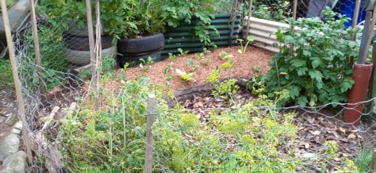 The missus has planted some vege seedlings. Tomatoes, rocket, pak choi, basil and spinach. Lets hope the chicken-retardant fencing works.
