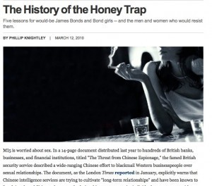 In support of the delight I’m taking in every salacious detail of the General Petraeus/Paula Broadwell scandal, aka “Generals who can’t control their privates,” I’m posing a link to Philip Knightly’s History of the Honey Trap article posted at foreignpolicy.com.